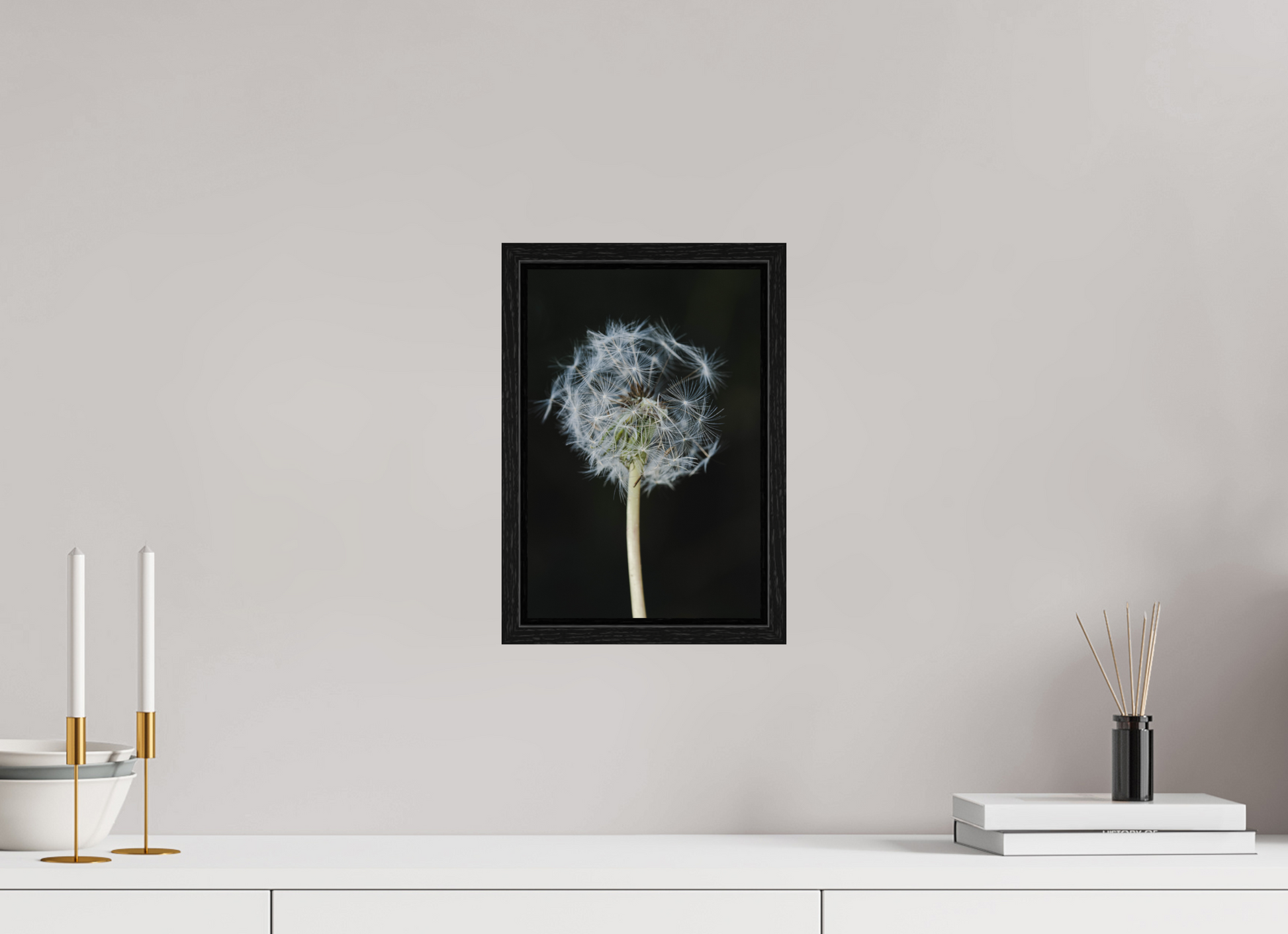A lone dandelion stands tall, its intricate seed head illuminated against the darkness. Each tiny filament seems to whisper a story of change, as the wind waits to carry them toward new beginnings. A moment of stillness before transformation, this image embodies the delicate balance between holding on and letting go.