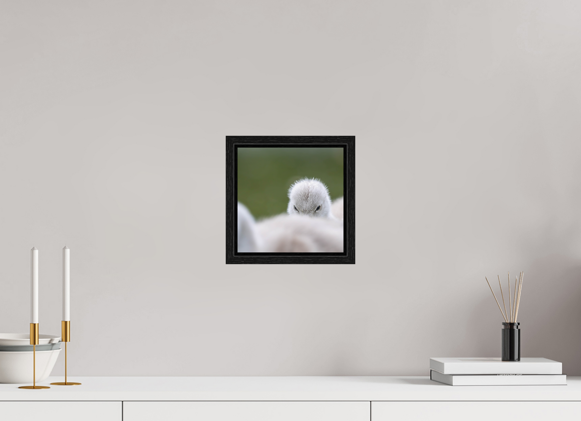 A delicate cygnet stands at the water’s edge, its soft gray down hinting at the elegance it will one day embody. This tender portrait captures the quiet beginning of a creature destined for grace, framed by the blurred world around it, still learning to navigate its new life.